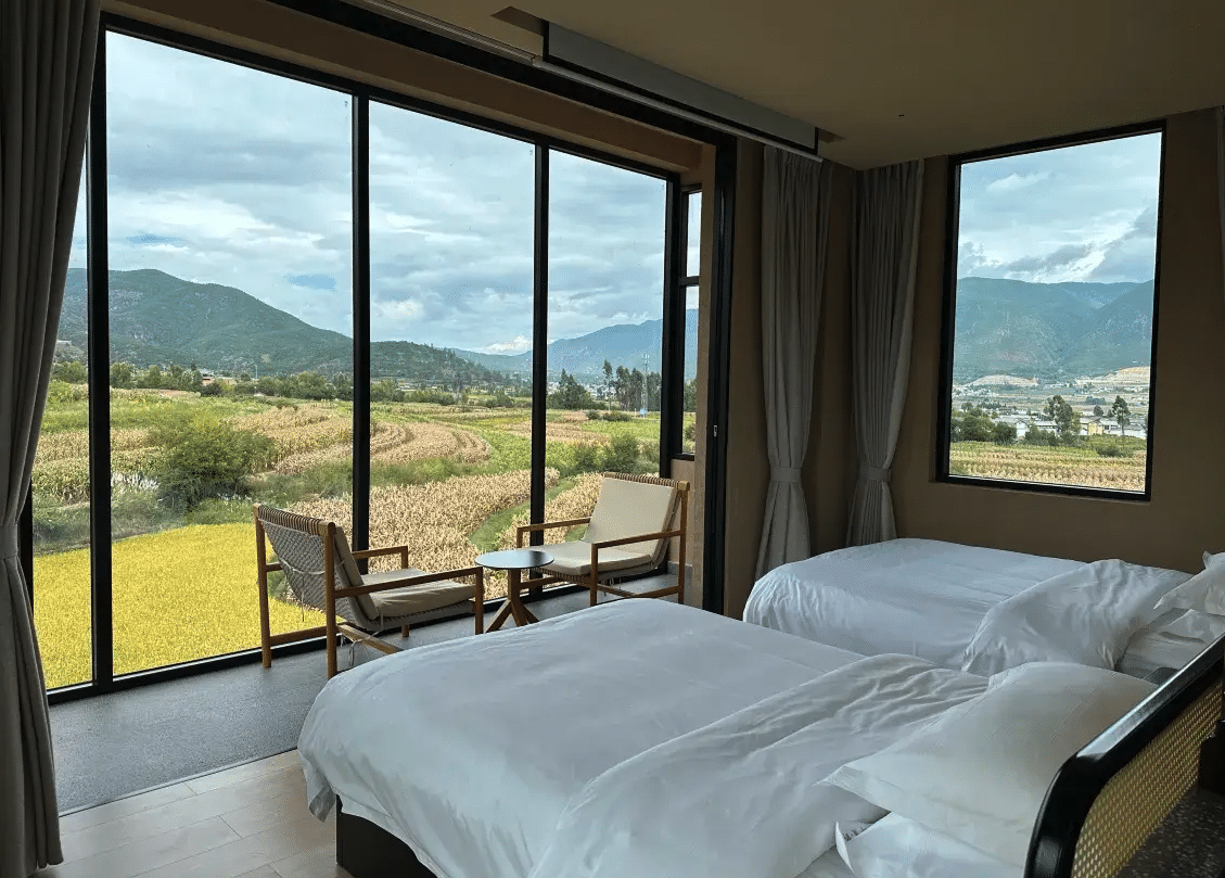 Surrounded by rice paddies and mountains, October Luxury Villa Hotel is a perfect sanctuary for travelers seeking tranquility and authenticity. Located at the foot of Mount Changle, guests enjoy fresh air and breathtaking sunrises and sunsets. The nearby old town of Shaxi with its traditional market and historic alleys is easily accessible, providing a balance between peaceful retreat and cultural exploration.