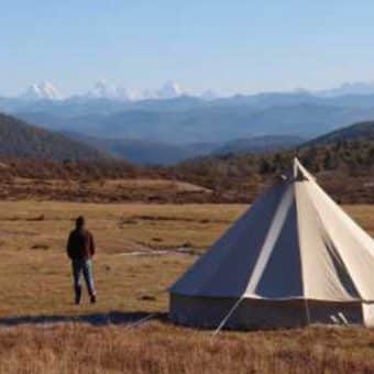 Ascent of three successive passes located between 3,800 and 4,100 m. Views of the region’s mountain peaks, such as Kawa Karpo (Meili Mountain), the Yading mountain range in Sichuan, and closer by, the Abujee massif. Our hike takes us through forests of larch, fir, and rhododendron trees of rare beauty. Tonight’s camp is planned on a new mountain pasture located at an altitude of 4052 m.