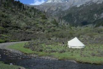 Ascent of three successive passes located between 3,800 and 4,100 m. Views of the region’s mountain peaks, such as Kawa Karpo (Meili Mountain), the Yading mountain range in Sichuan, and closer by, the Abujee massif. Our hike takes us through forests of larch, fir, and rhododendron trees of rare beauty. Tonight’s camp is planned on a new mountain pasture located at an altitude of 4052 m.