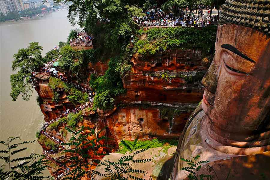 Road to Leshan (1h). River cruise to enjoy the view on the Giant Buddha (entrance: 70 RMB). Walk up to the head of the Buddha (entrance: 80 RMB). Visit Lingyun Temple. Continuation to Huanglongxi (1h30), stroll through the old town. Drive back to Chengdu (1h).