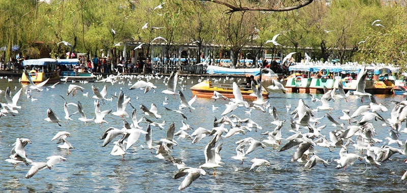 The Green Lake Park which is founded in the 7th century under the Qing dynasty, is located in the heart of Kunming. In the early morning The Green Lake Park is animated with the practices of Tai-Chi, Qigong, dances and sword-play, Mahjong and cards, and also other players of erhu fiddle, a Chinese violin with two chords.In winter, the sea gulls from Siberia come on the river banks, natural curiosity unique in the world. In summer, its green water covers with lotus. Every Sunday, the park is the most animated period where the locals come to relax with their children. You will be able to walk in the park at the beginning of morning to benefit its alleviating atmosphere or why not having a drink in a tea-house there after a day of visit?Entrance fee of THE GREEN LAKE PARK: FreeAccess: Public bus No.1 from city center, or taxi for 10-20 RMB.