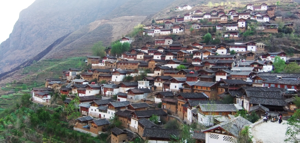 To get there, you have to take the road leading to the Jade Dragon Snow Mountain and pay the entrance fee of 190 yuan. You can therefore take the opportunity to take a short break near the mountain site. The road to Baoshan is mainly used by trucks and depending on the weather conditions, it can turn into a 4×4 track in places. However, you will drive on the mountainside, through magnificent landscapes and very charming villages, in the Yunnan countryside. After a 4-hour drive from Lijiang, you will have to leave the car, to do the last few hundred meters on foot by stairs overlooking the village. You will be staying in one of the two inns in the village, quite basic but charming.
