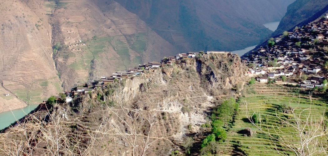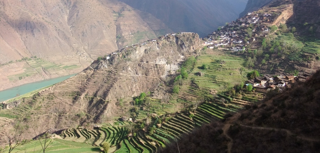 The climate of Baoshan is quite hot and humid. The land is dry but the crops are abundant. Coming from Lijiang, you really feel like you are in another world as the landscapes, climate and pace of life are so different! Depending on your desires, several walks are possible. You can go down near the river through the terraced fields to reach a small gray sand beach surrounded by palm trees. You can watch the locals working the land and dip your feet in the cold water of the Yangtze. You can also leave the village along the crops and find yourself on the mountainside in the middle of thousands of cacti with a breathtaking view of the Yangtze.